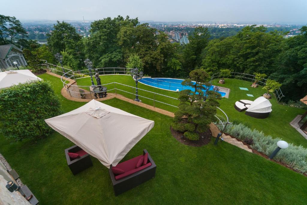 Mitten in Dresden-Loschwitz, umgeben von Grün und mit weitem Blick über die Stadt, verbindet die Villa Via Lapis Ruhe, Weite und gehobenen Komfort mit Sauna, Wellnessbereich und Pool.